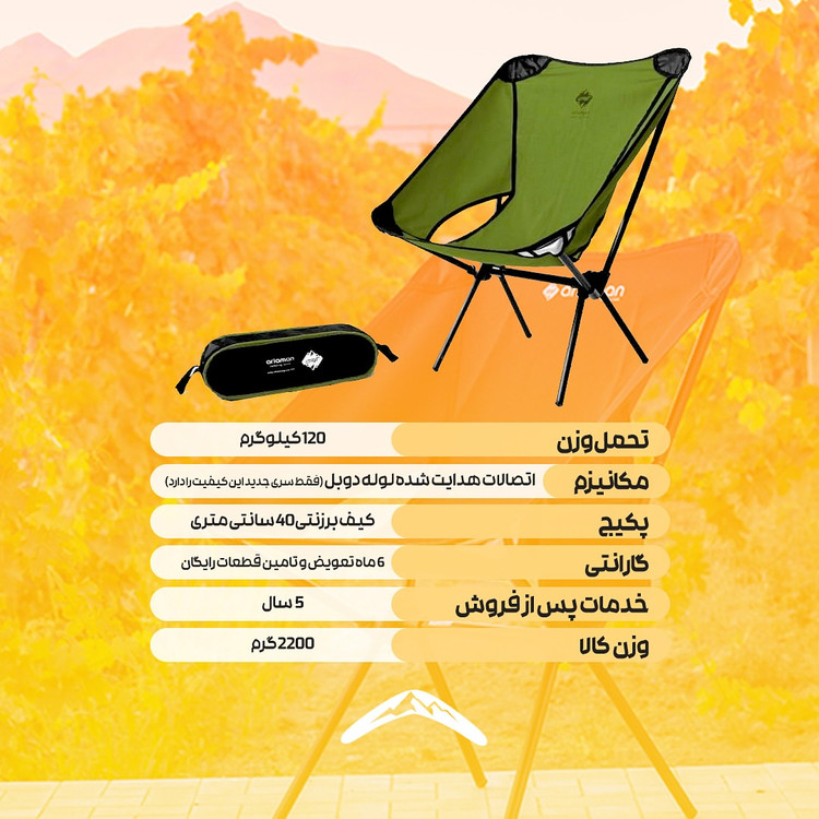 بدون شک بهترین انتخابه چون هیچ فضایی رو اشغال نمیکنه تو هر ماشینی حتی تو کوله سفری هم میتونین بزارین و همراهتون ببرین با بهترین کیفیت ممکن و طراحی شیک رنگ بندی؛زرد ،مشکی ، قرمز ، زیتونی تنوع در رنك بندى, داراى ۶ ماه ضمانت و یک سال خدمات پس از فروش الكترواستاتيك مات با كيفيت بالا مناسب براى طبيعت كردى، مسافرت، كمپينك، حياط منزل، ويلا، ساحل و نصب بسيار آسان در كمترين زمان ابعاد باز شده ٥٣ ٥٥٥ سانتى متر ٢ ابعاد كيف؛ ٣٧ ١١ ١٥ سانتى متر تحمل وزن ؛ ۱۲۵ کیلو كرم وزن محصول ؛ ۲.۲ کیلو کرم جنس پارجه ؛ نانو آب گریز جنس بدنه ؛ فلز