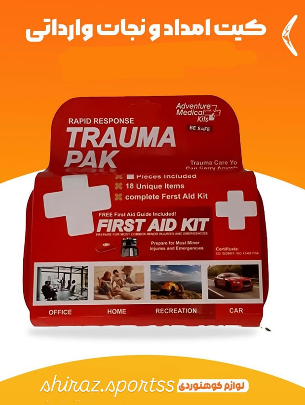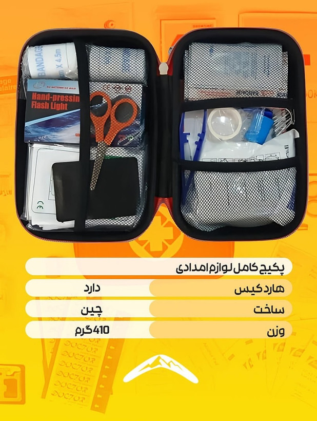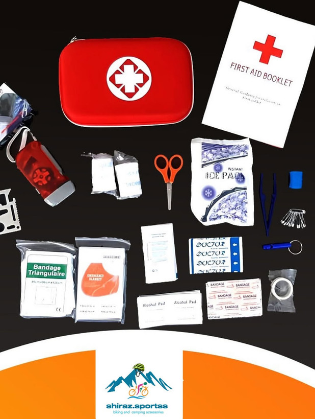پکیج کمک های اولیه لوازم امداد : چسب زخم پنس گاز استریل شریان بند باند کشی باند زخم چسب باند پدالکلی سوت سنجاق قفلی پتوینجات دستمال قیچی چسب حلقه ای چراغ قوه و کمپرس یخ